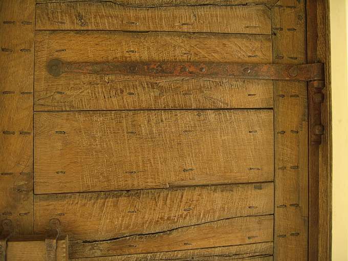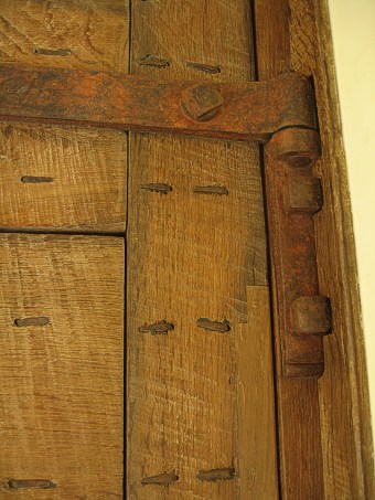 of the pair of heavy iron door hinges and pintles. The iron pintles