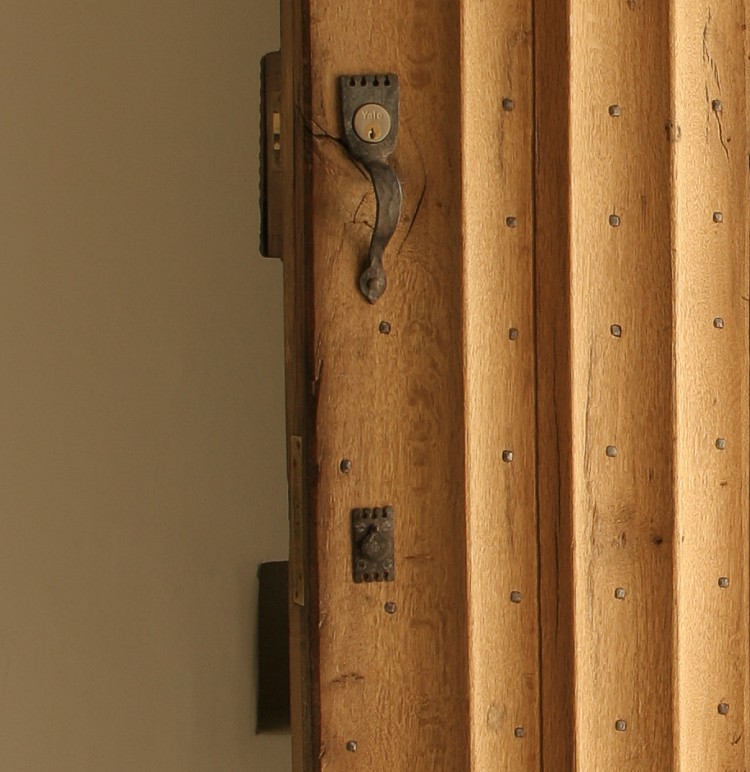 showing the hand forged handle for the rim latch and the covered escutcheon