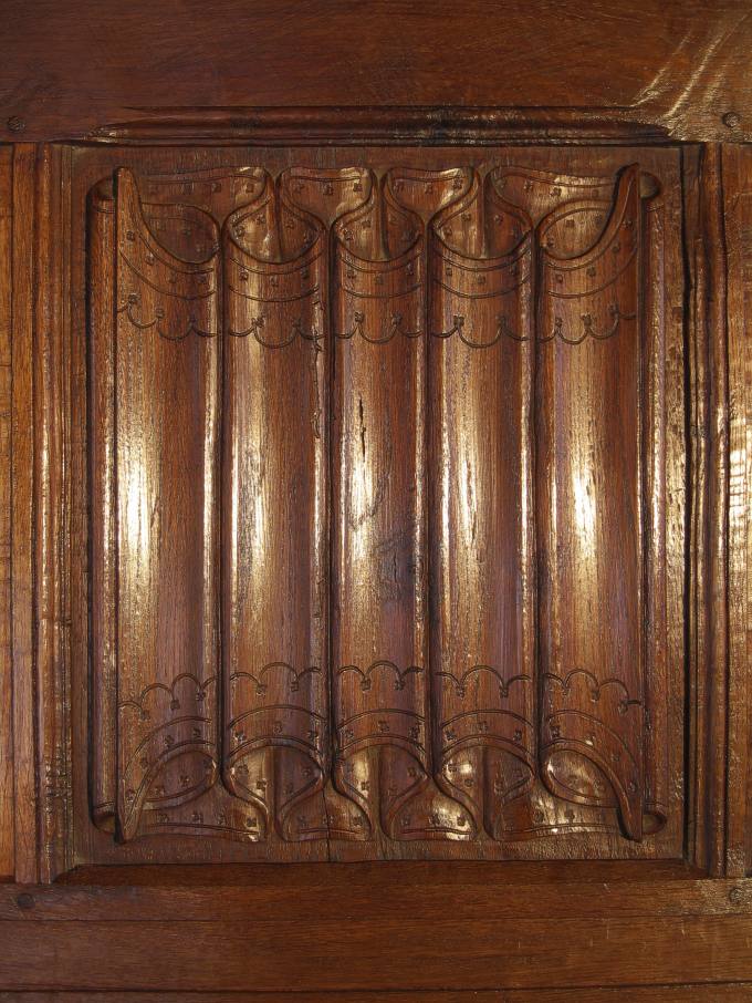 of the headboard linenfold panels hand-carved to a design dated c.1540.