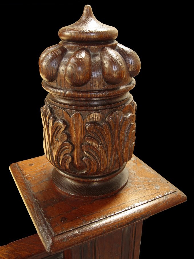 One of the hand carved foot post turnings.
