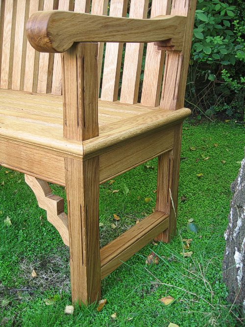 Detail of the National Trust oak garden bench.