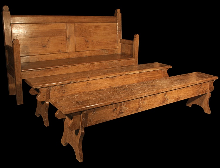 This 18th century style oak settle and authentic copy of a medieval oak bench are now featured on our sister site Early Oak Reproductions with size, colour, finish and price options. a More links to detail photos below |