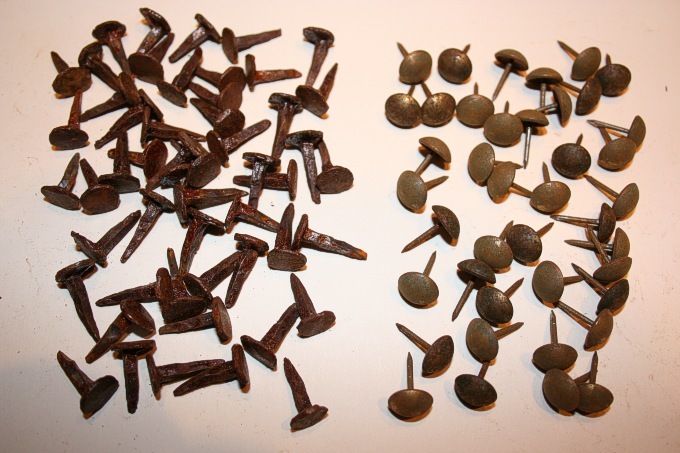 of the handmade nails (prematurely rusted) and aged brass studs, used