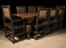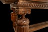 An Elizabethan Style (late C16th) Carved Oak Dining Table, handmade (click this link to appreciate what goes into our handmade furniture) from old reclaimed oak. We have built a "history" into this piece and some of the detail photos below will explain how and what. Our client spent some considerable time searching for a suitable original table, to no avail. Without compromising period authenticity, we were able to make this piece to a size that fits perfectly into their dining room whilst achieving height, width and length dimensions for optimum dining comfort. (For more examples see our sister site, Early Oak Reproductions, refectory tables) 102" long x 34" wide (259 cms x 864 cms) a Price Guide: top end of H (handmade from old reclaimed oak) More photos below |