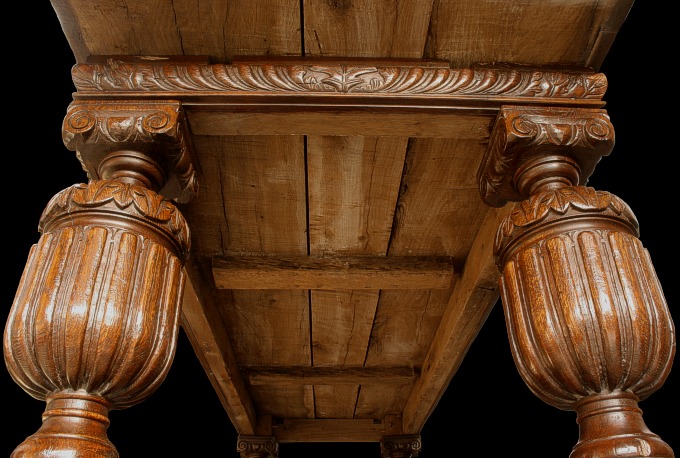 ELIZABETHAN STYLE CARVED OAK DINING TABLEa a |