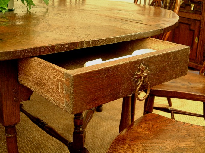 photo showing one of the gateleg drawers, hand-cut period dovetails